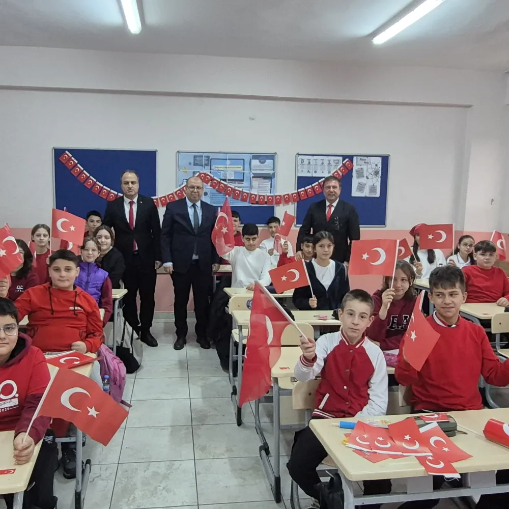 Şehit Erbil Arslan Ortaokulu’nda düzenlenen yeni dönemin ilk dersinde, ay-yıldızlı bayrağımızın tarihi ve manevi değeri işlendi. Millî birlik ve beraberliğimizin en güçlü simgesi olan bayrağımızın, bir milletin bağımsızlık ve hürriyet mücadelesindeki yeri üzerine interaktif etkinlikler gerçekleştirildi. Öğrenciler, bayrak sevgisine dair duygu ve düşüncelerini paylaşırken duygusal anlar yaşandı.